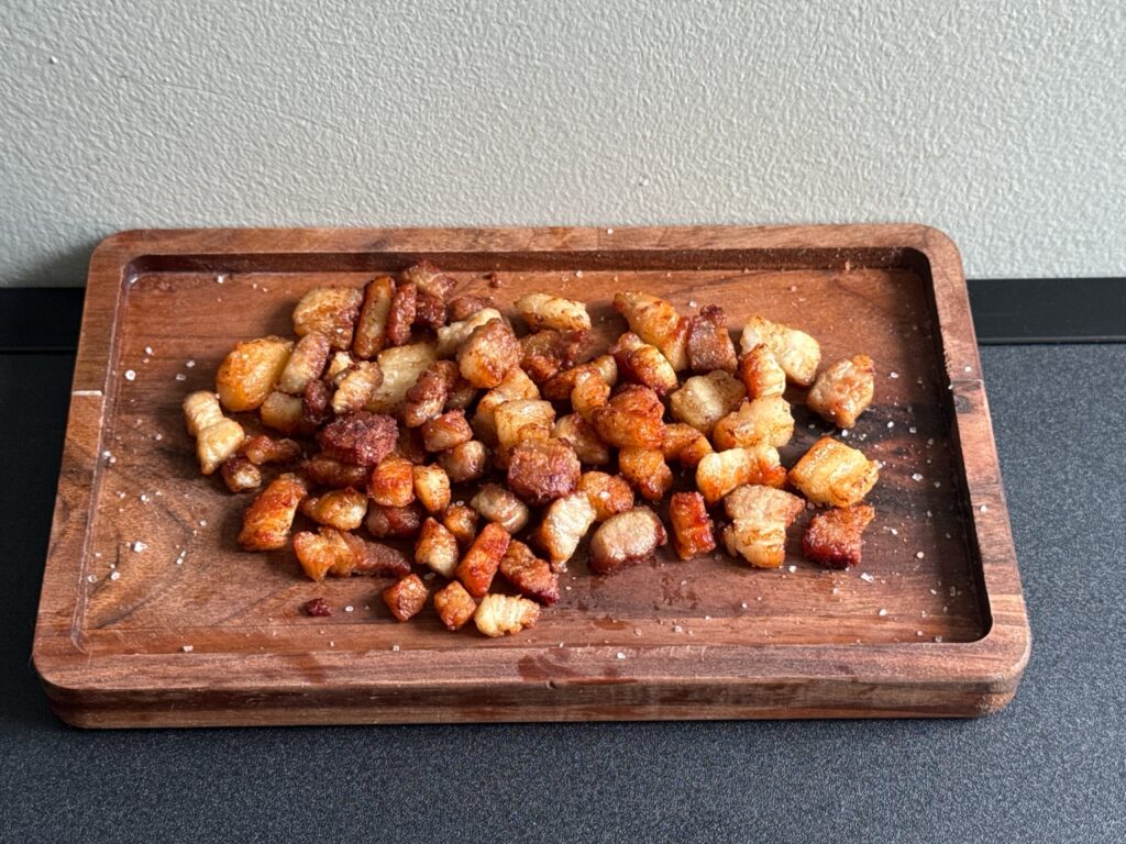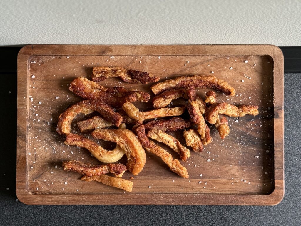 Carnivoor snacks zijn simpel en verzadigend: spekchips uit de oven of airfryer, blokjes kaas, beef jerky, kippenhuid uit de airfryer of een gekookt ei. Geen koolhydraten, geen suiker, alleen pure dierlijke brandstof.