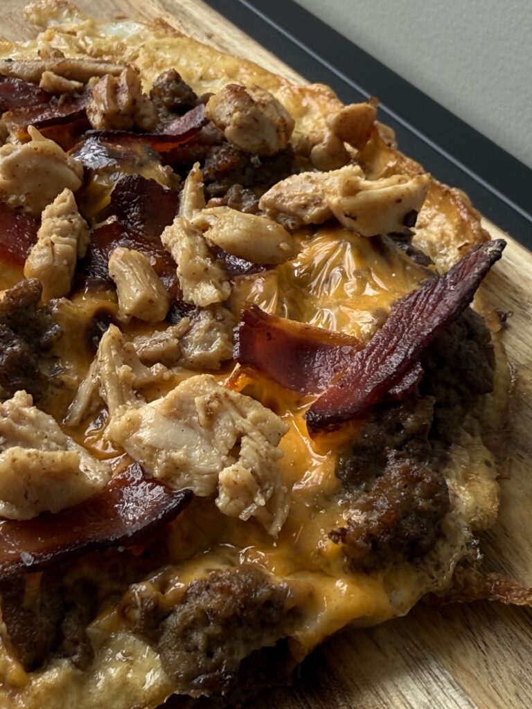 Geen bloem, geen saus, geen onzin. Alleen vlees, eieren en kaas en toch voelt het als pizza. Makkelijk te maken, snel klaar, en perfect voor een stevige lunch of als avondmaaltijd.